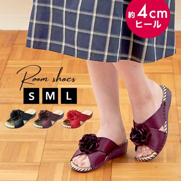 ヒールスリッパ フロッキーフラワー おしゃれ 室内履き 上品 小さいサイズ 日本最大級のスリッパ通販専門店 ビューピー