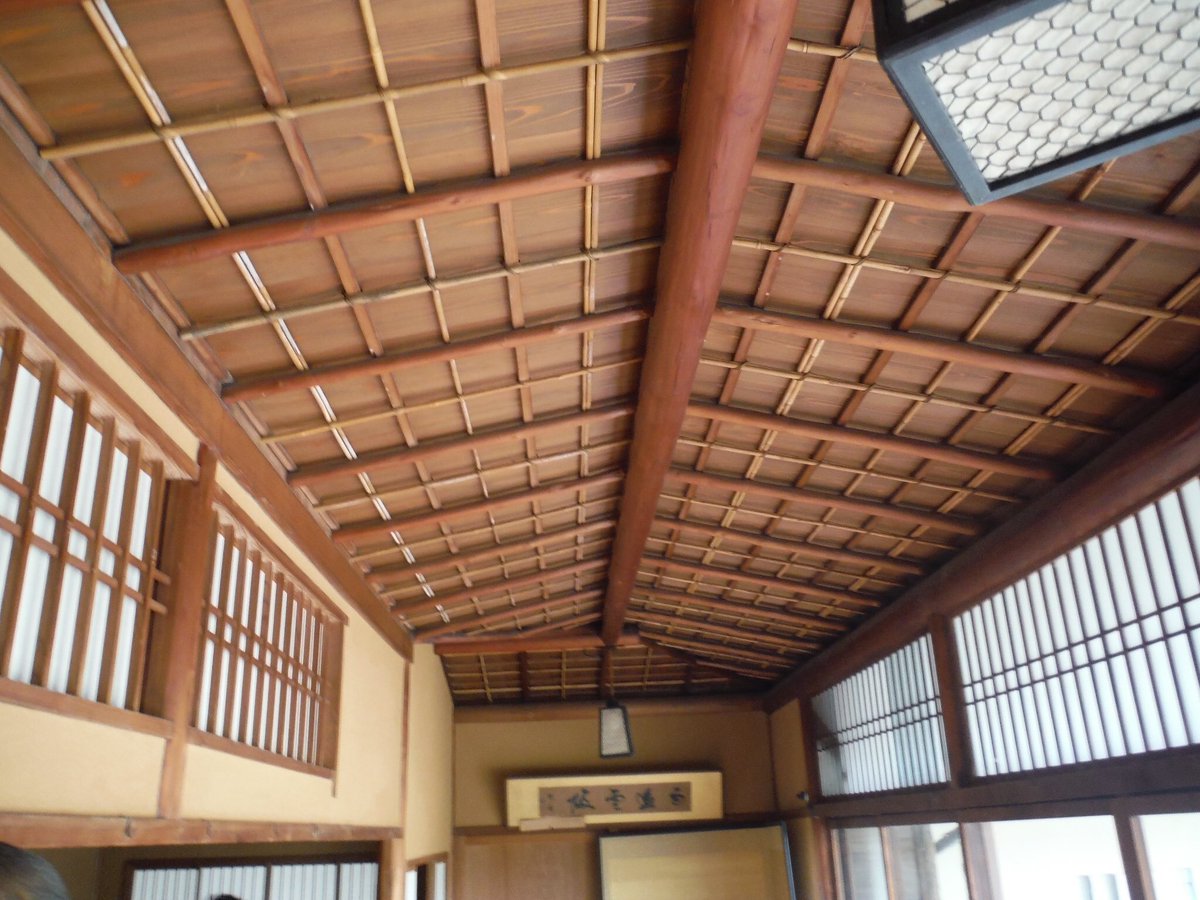 洋館から和館に続く廊下 天井は船の底をひっくり返し返したような形状から 船底天井 という